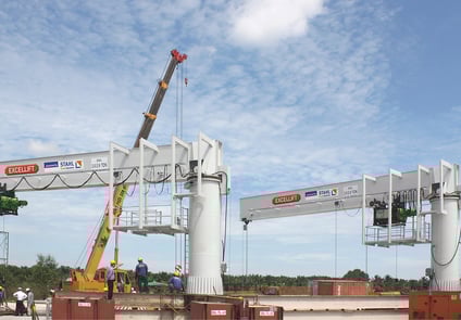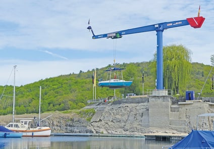 Customised and immediately ready for use: jib cranes with components from STAHL CraneSystems are the economical solution in yacht harbours, manual workplaces, chemical plants and production lines. With lifting capacities of 63 kg to 10,000 kg, they are used with push or electric trolleys with chain or wire rope hoists. Higher safe working loads and custom solutions are naturally possible for specific applications.