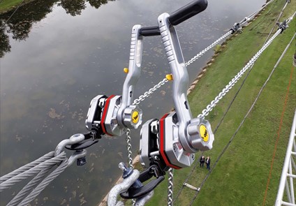 The YaleERGO360® UT is our safest ratchet lever hoist, equipped with a patented safety locking system. In this application, the lever hoist was used for tensioning conductor cables before installing the insulators — ensuring maximum safety and precision during setup.
